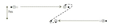 D) To give a longer break the drill can also be done in groups of six with two in the middle and a player on each of the outside cones. With two balls a ball moves along each of the diagonals with the players getting the ball from one corner and trying to move it on to the opposite corner.