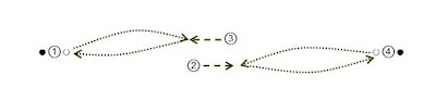 Arrange cones in a 10m square with two players at opposite cones at two players in the middle. The players at the cones have a ball each.